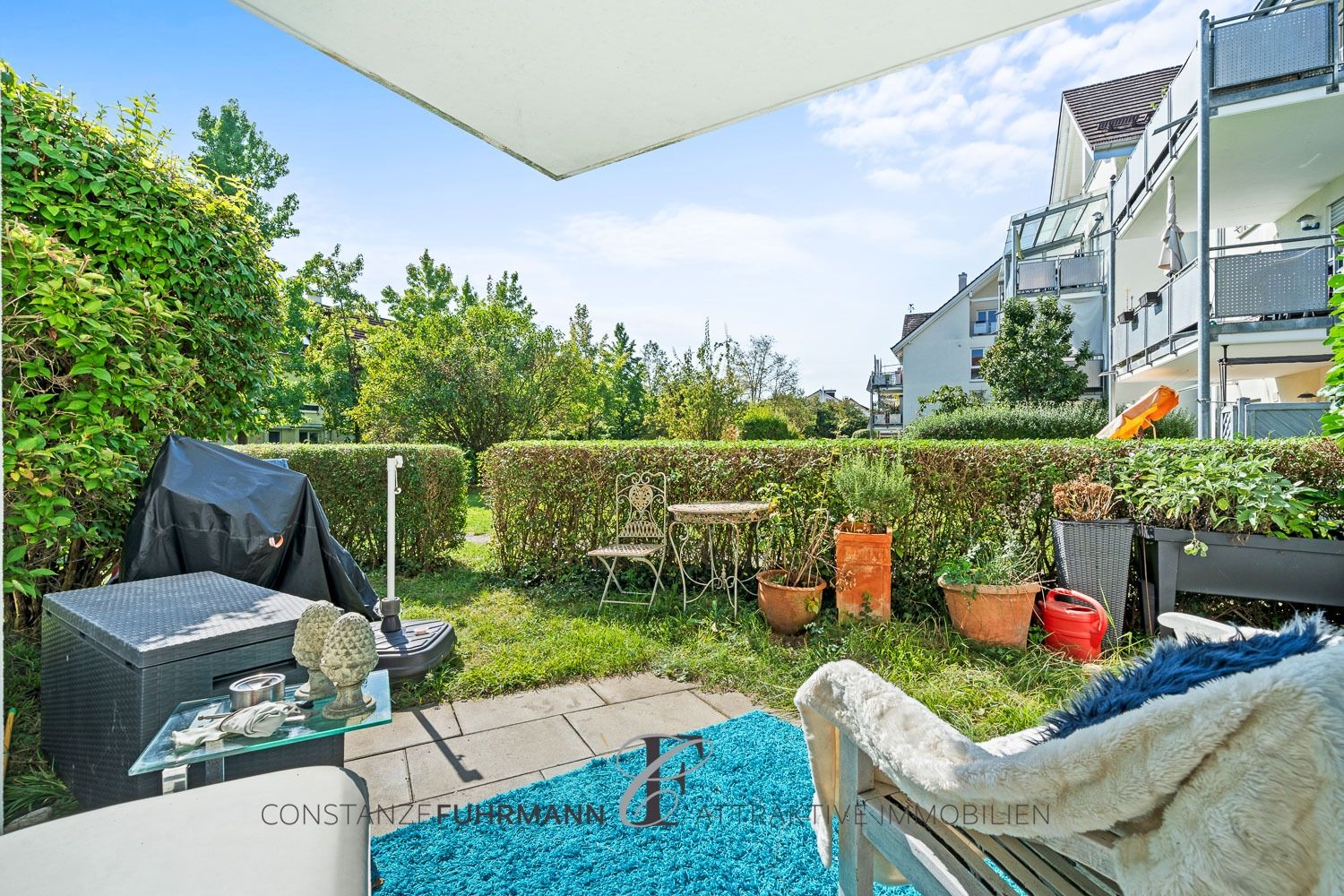 VERKAUFT: Böhringen - Ruhige Zwei-Zimmer-Wohnung mit West-Terrasse im Grünen, inkl. TG-Platz