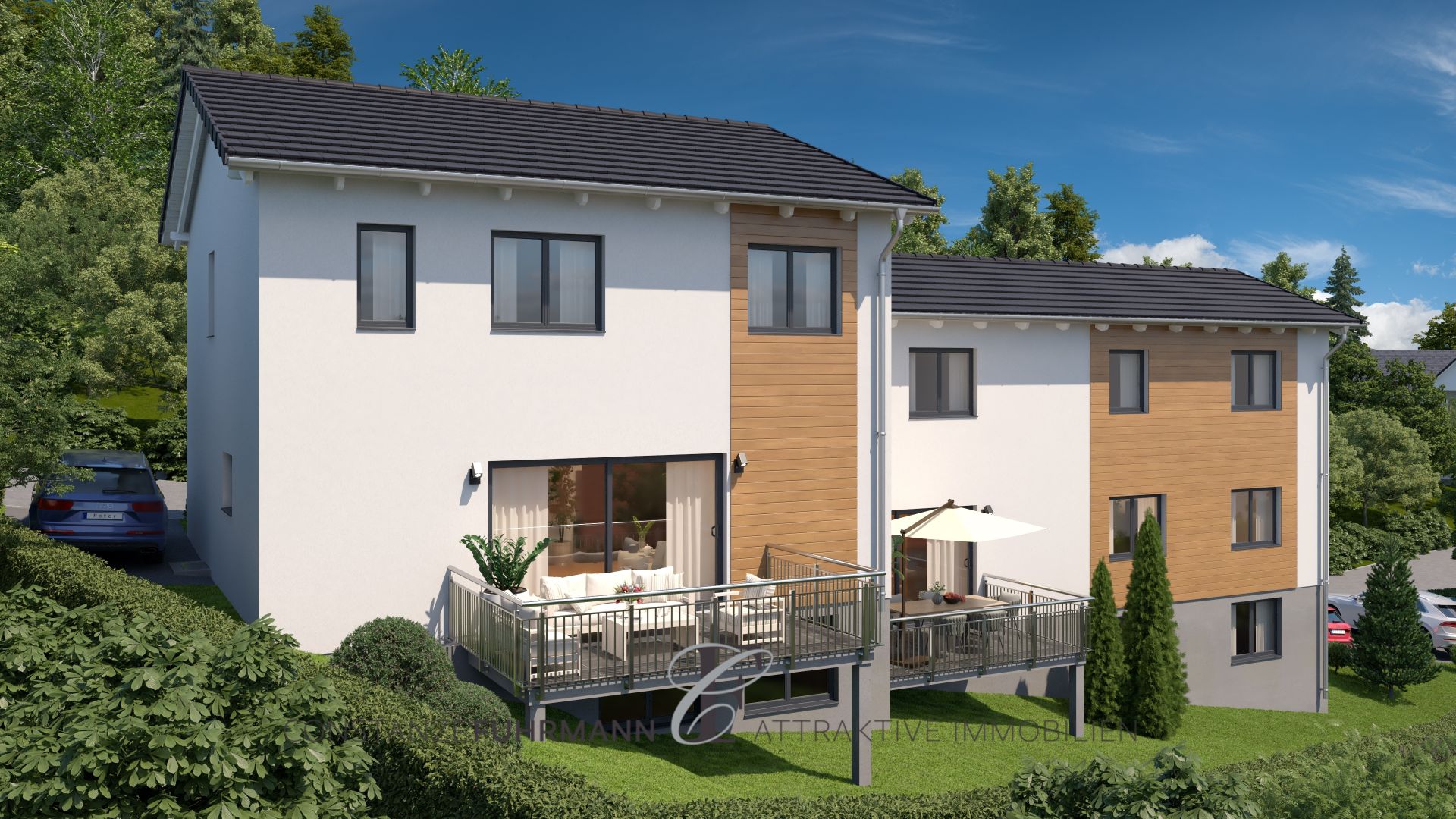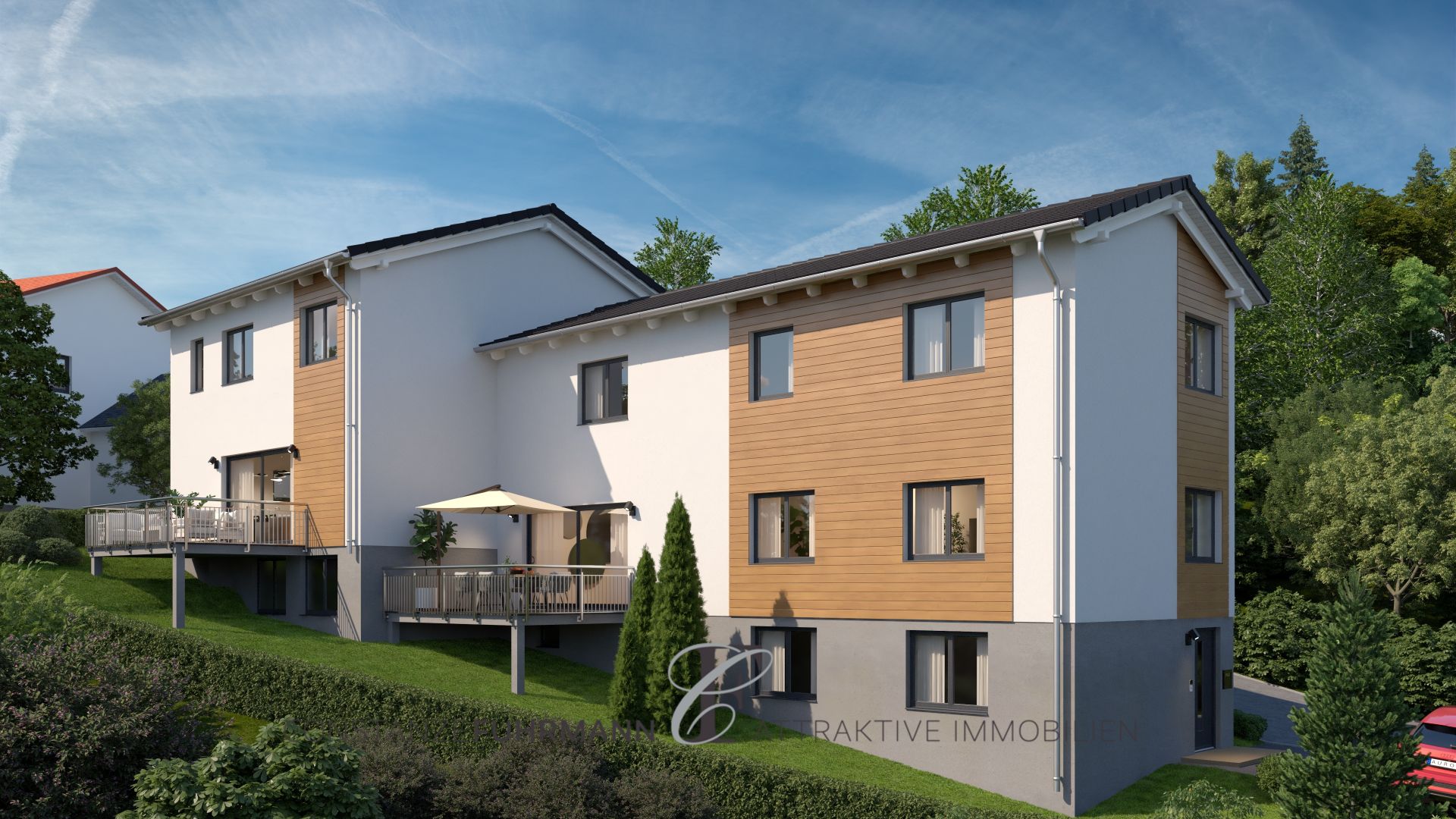 Projektierte DHH, schlüsselfertig, mit Einliegerwohnung u. Grundstück in unverbaubarer Fernsichtlage